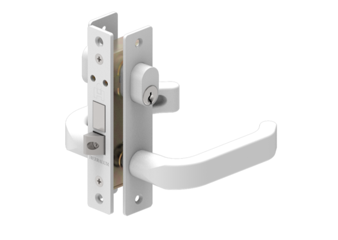 Chapa doble manija con dos cilindros llave-llave para puertas con perfiles de aluminio. *Su diseño ayuda a una mejor fijación del cuerpo a los cilindros, lo que permite que no se suelten las manijas ni se aflojen los tornillos. **Incluye juego de llaves.